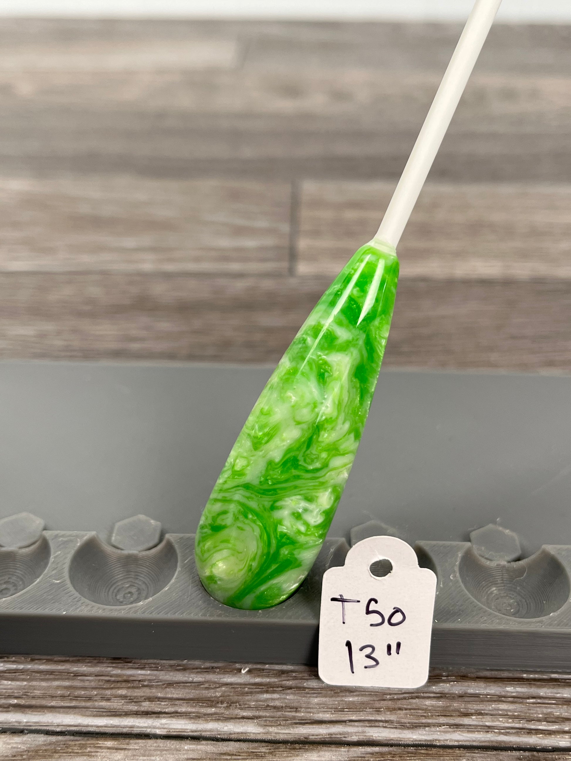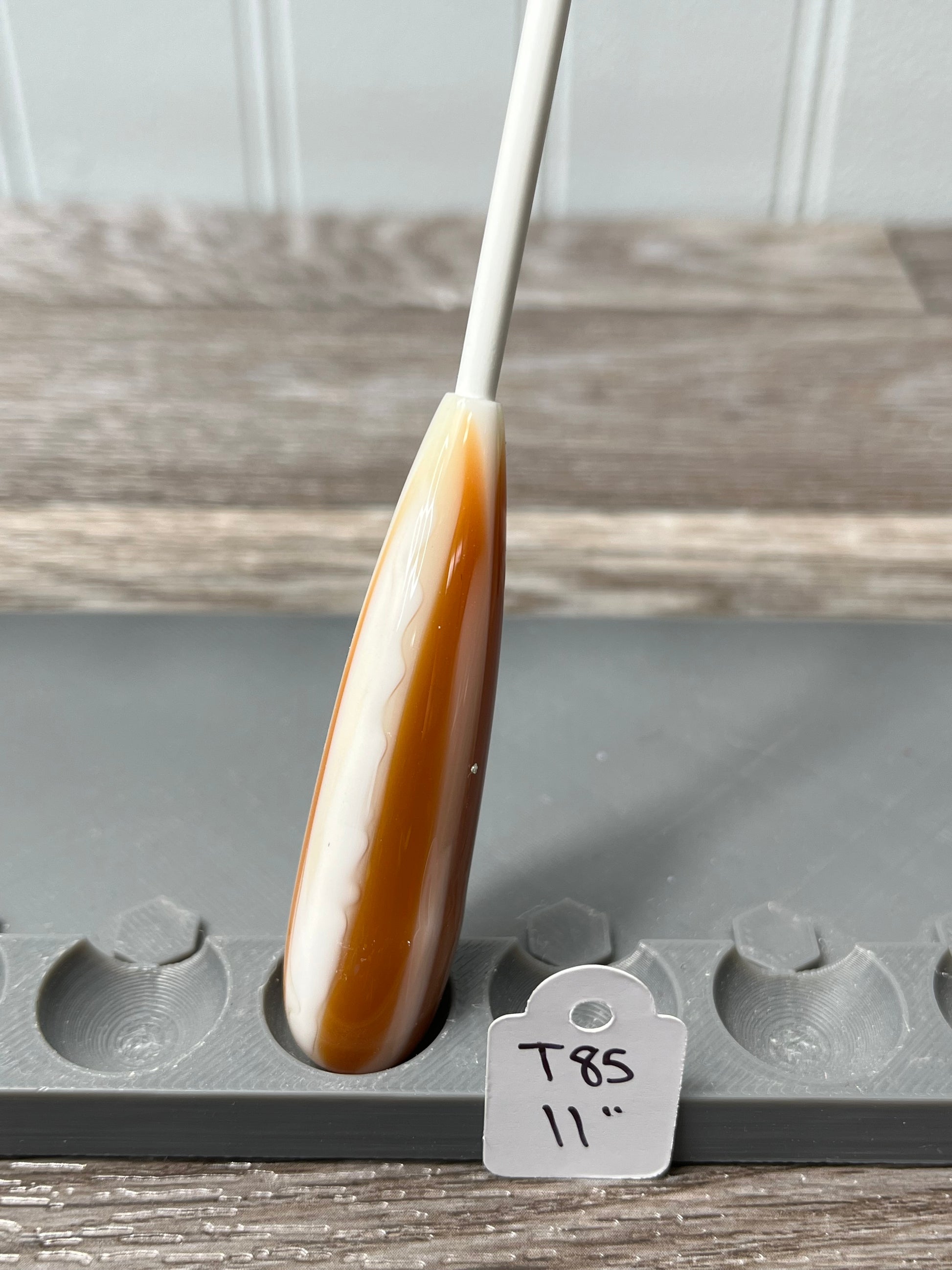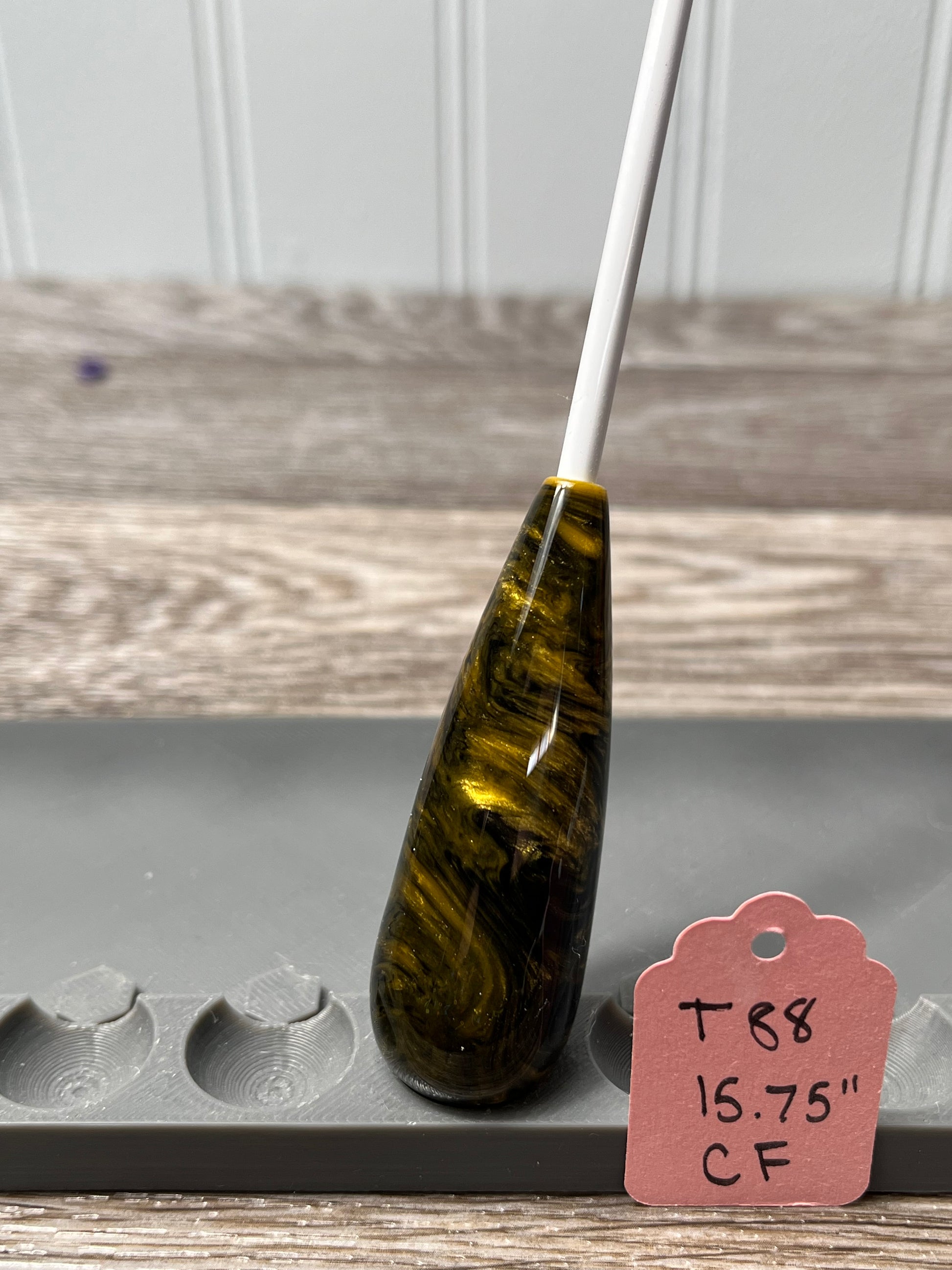 Pure white in its natural form, a fiberglass shaft elevates the look of this conducting baton without the risk of chipping! The shaft is slightly springy and whippy, so as with any baton, take caution not to hit it too hard or it may crack.
