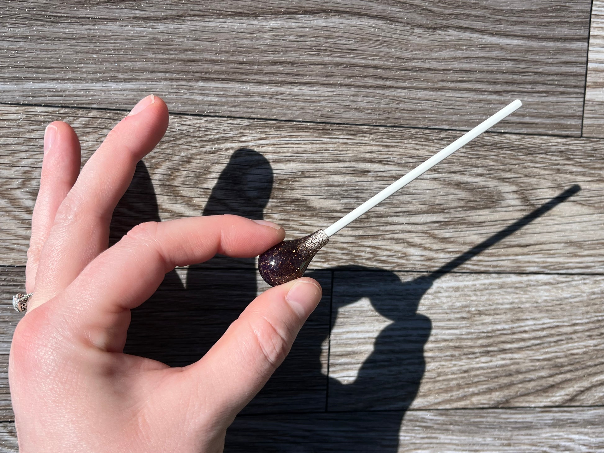 Pure white in its natural form, a fiberglass shaft elevates the look of this conducting baton without the risk of chipping! The shaft is slightly springy and whippy, so as with any baton, take caution not to hit it too hard or it may crack.